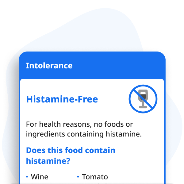 Communiceer eenvoudig je histamine-intolerantie wanneer je uit eten gaat met de Digitale Intolerantiekaart. Deze downloadbare PDF legt je dieetwensen duidelijk uit, zodat restaurantpersoneel begrijpt dat je alle voedingsmiddelen en ingrediënten met een hoog histaminegehalte vermijdt, zoals wijn, azijn, gepekelde kaas, gepekeld vlees, sojasaus en tomaat.
